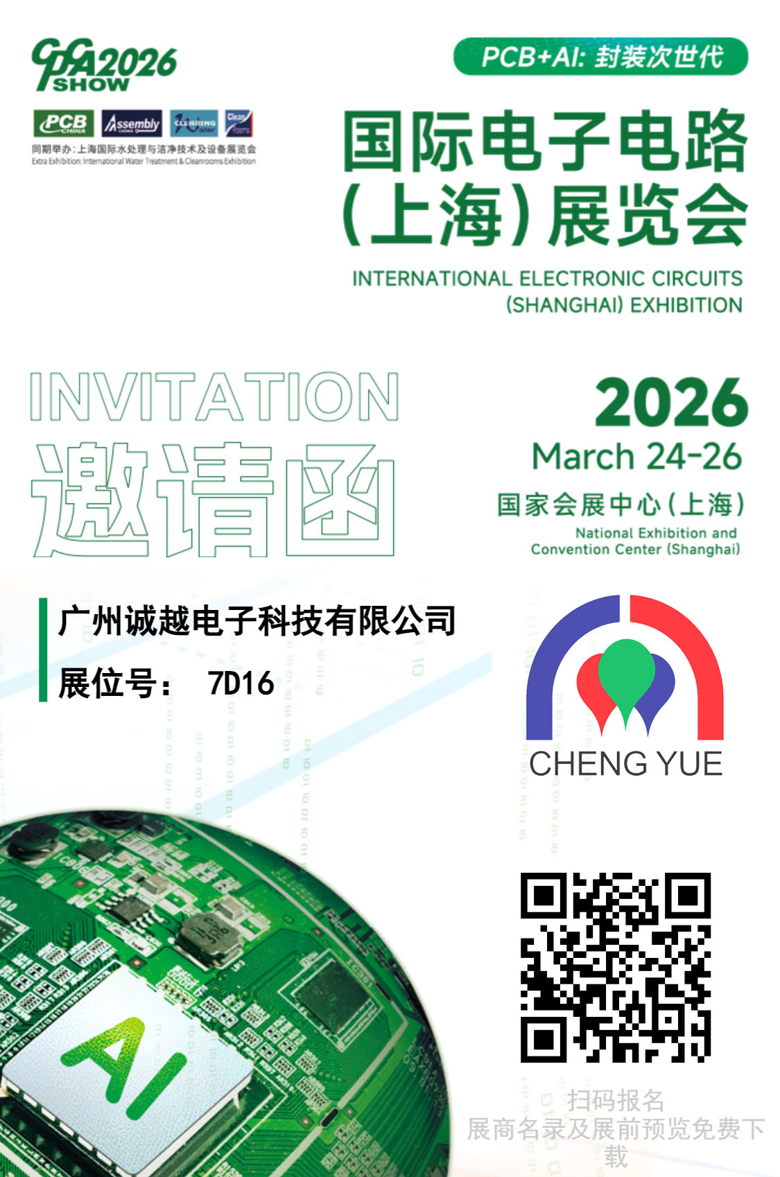 广东诚越新材料科技有限公司诚挚邀请您莅临 2026年3月24日至26日在国家会展中心(上海)举办的国际电子电路(上海)展览会(CPCA Show 2026)。